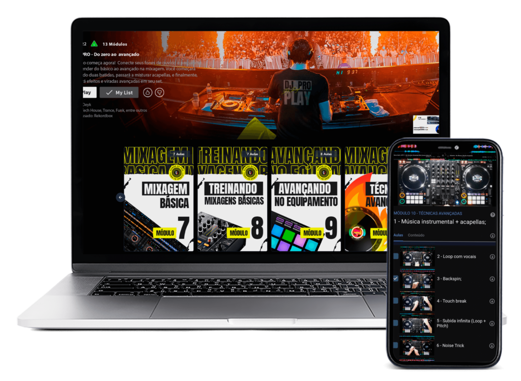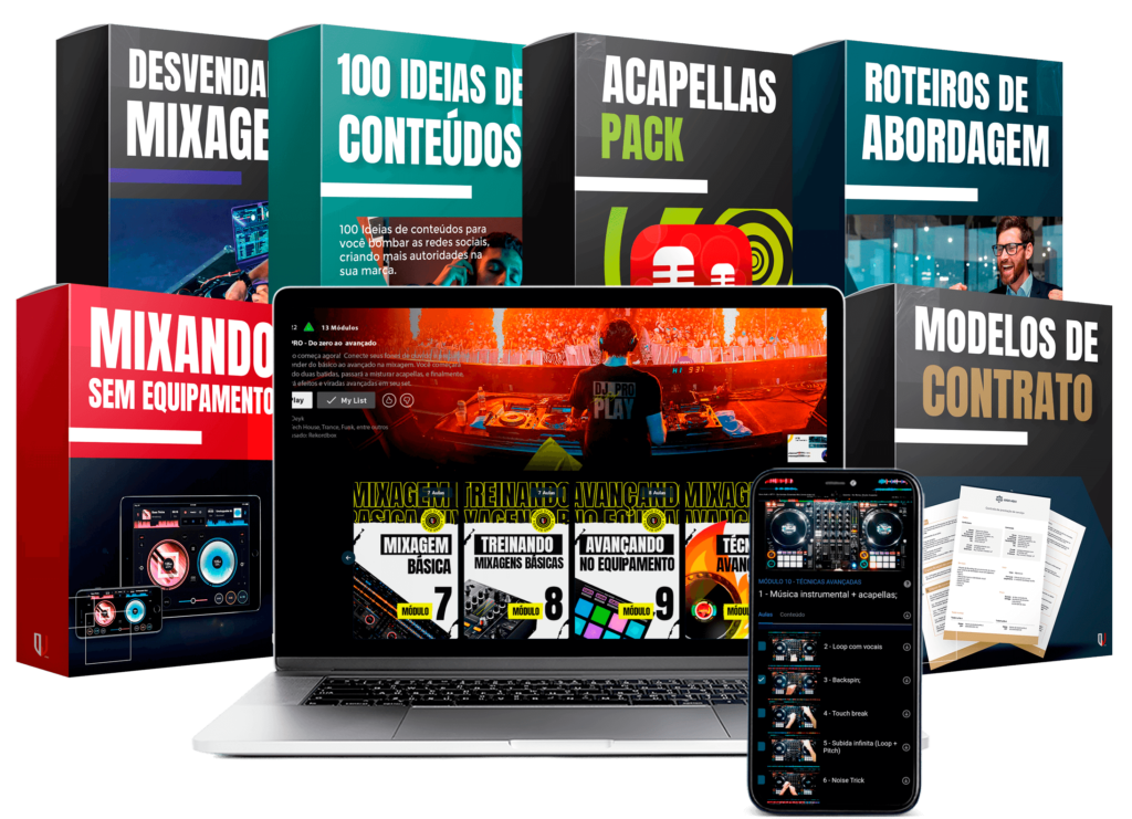 Este treinamento é obrigatório se você quiser ser capaz de fazer mixagens profissionais e se destacar como DJ. Aulas totalmente online e com + de 60 vídeo aulas e arquivos de acompanhamento, são acessíveis por meio de qualquer navegador da Web, para que você possa acompanhar a qualquer hora, em qualquer lugar, no telefone, tablet ou laptop.